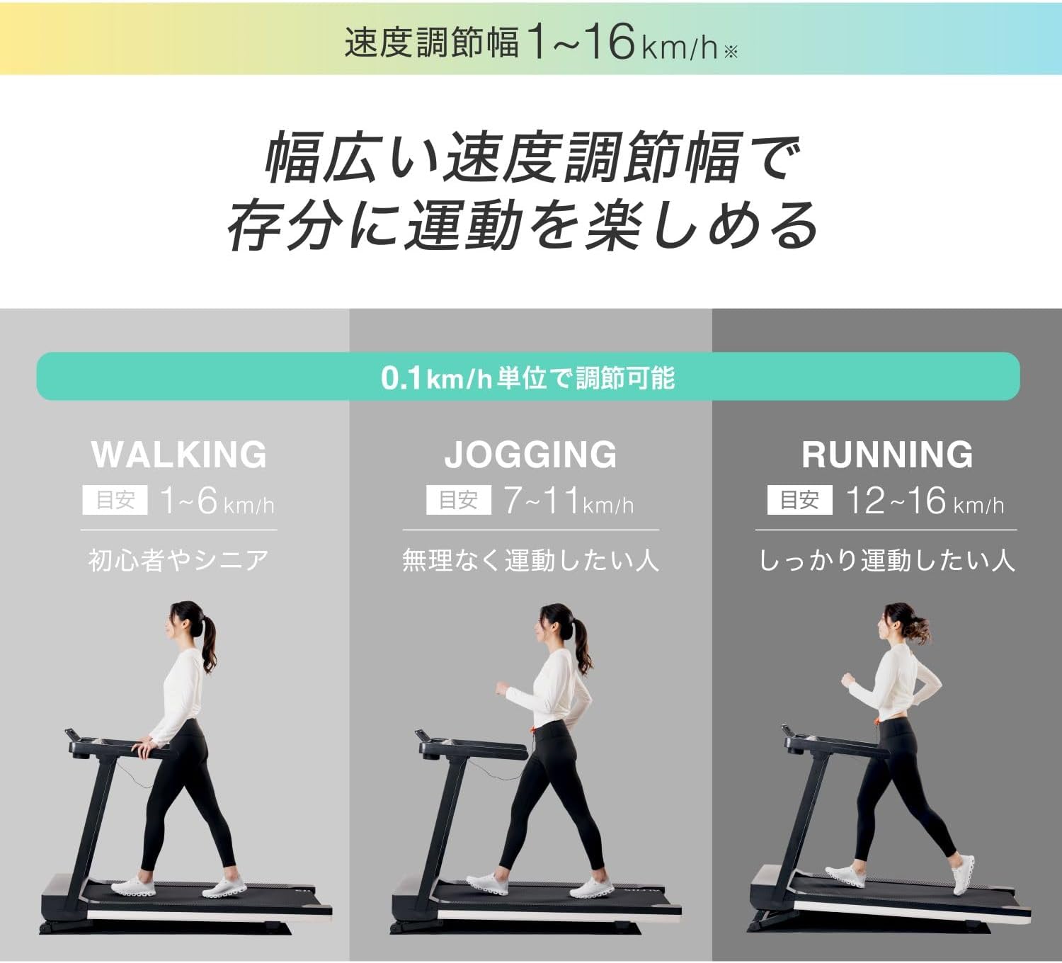パネルのボタンひとつで走行中に角度を変えることができ、角度をつけることで平地を走るよりも短時間で高い脂肪燃焼効果が期待できます。家庭用ながら電動昇降とアプリ連携を備えた、非常にハイスペックなモデルです。