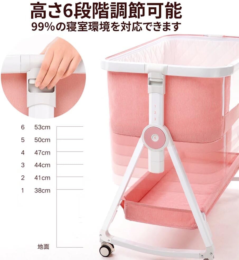 大人のベッドに固定ベルトで連結できるので、夜間授乳やお世話がしやすいく、赤ちゃんを近くで寝かせることができます。折りたたみ可能で旅行や帰省でもご使用できます。