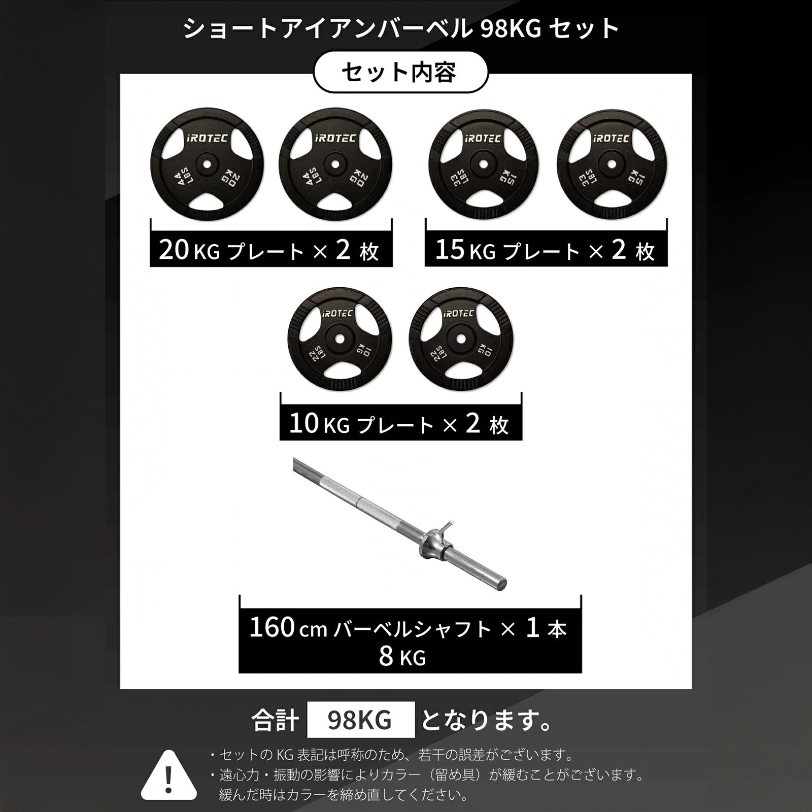 • アイロテック オリンピック ショートアイアンバーベル 98KGセット 28mm径