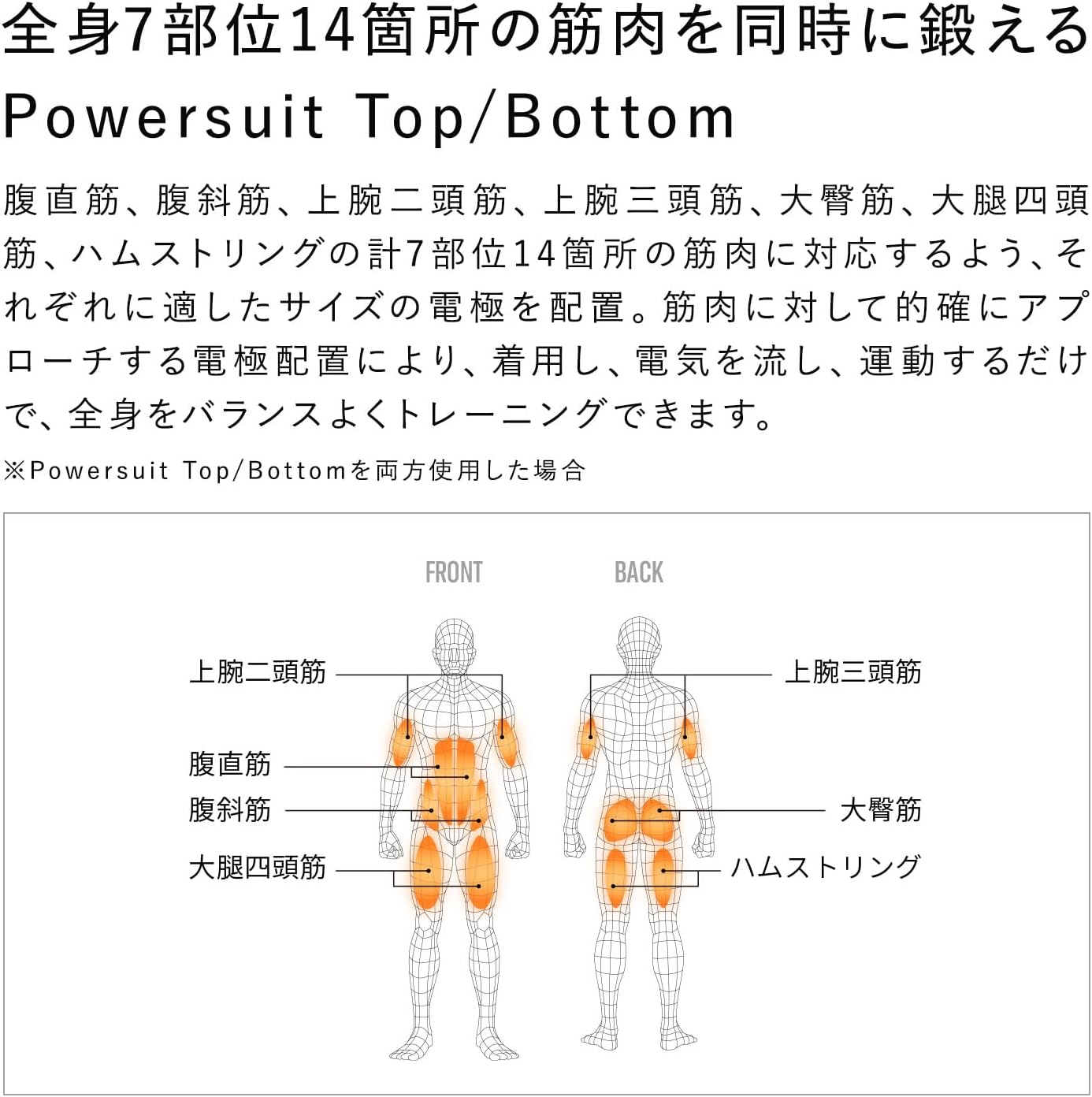パワースーツ トップ(別売り)と同時使用することで、最大7部位14箇所の筋肉を同時に鍛えることができます。