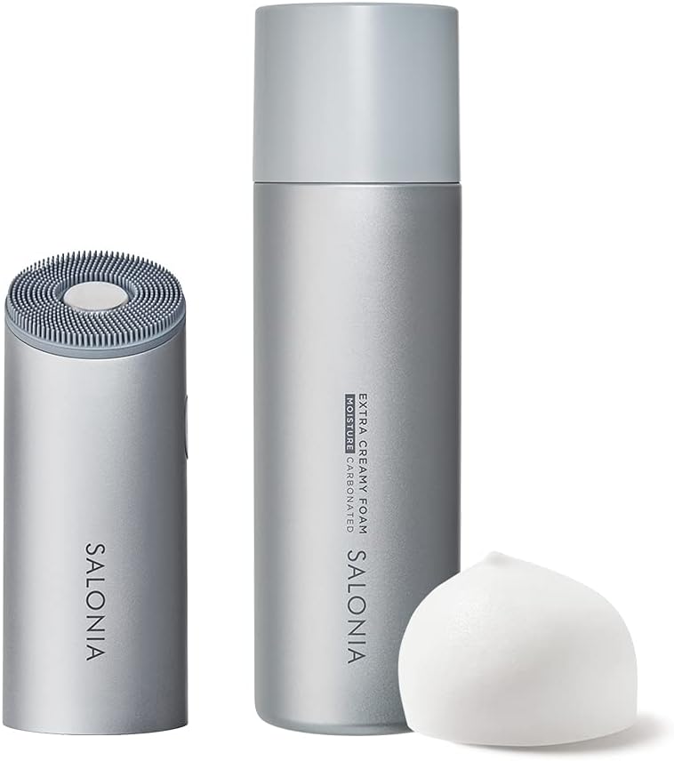 • SALONIA イオンフェイシャルブラシ&エクストラクリーミーフォーム 美顔器 SAL21202SL シルバー