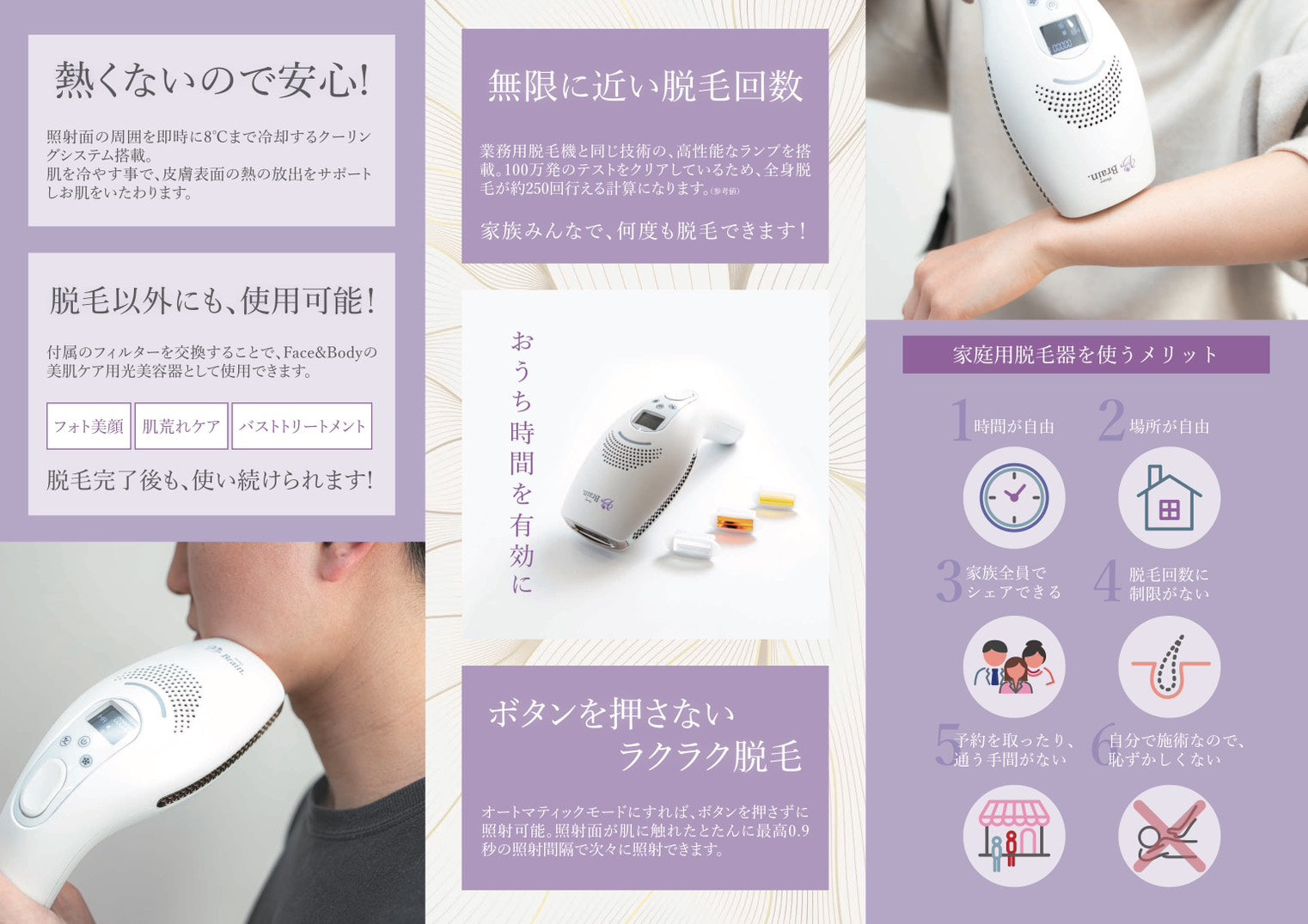 圧倒的なコスパ: サロン数回分の費用で、全身何度でも、納得いくまでケアが可能。