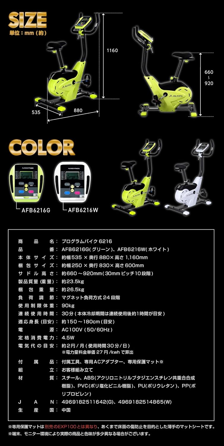 タブレットトレーや専用保護マット、移動用キャスターも付いており、おうちの中でお使いいただくからこその便利なポイントも備わった機能充実のバイクです。