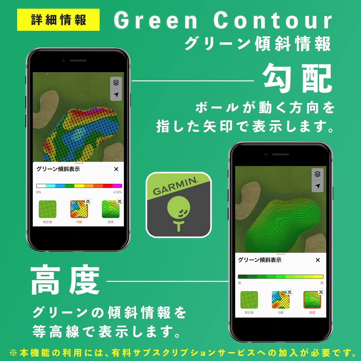 レーザー計測器トップクラスの±0.27ydという高い精度でターゲットまでの距離を正確に測定します。Garmin Golf アプリの有料サブスクリプションへの加入で、グリーン傾斜情報も利用できます。