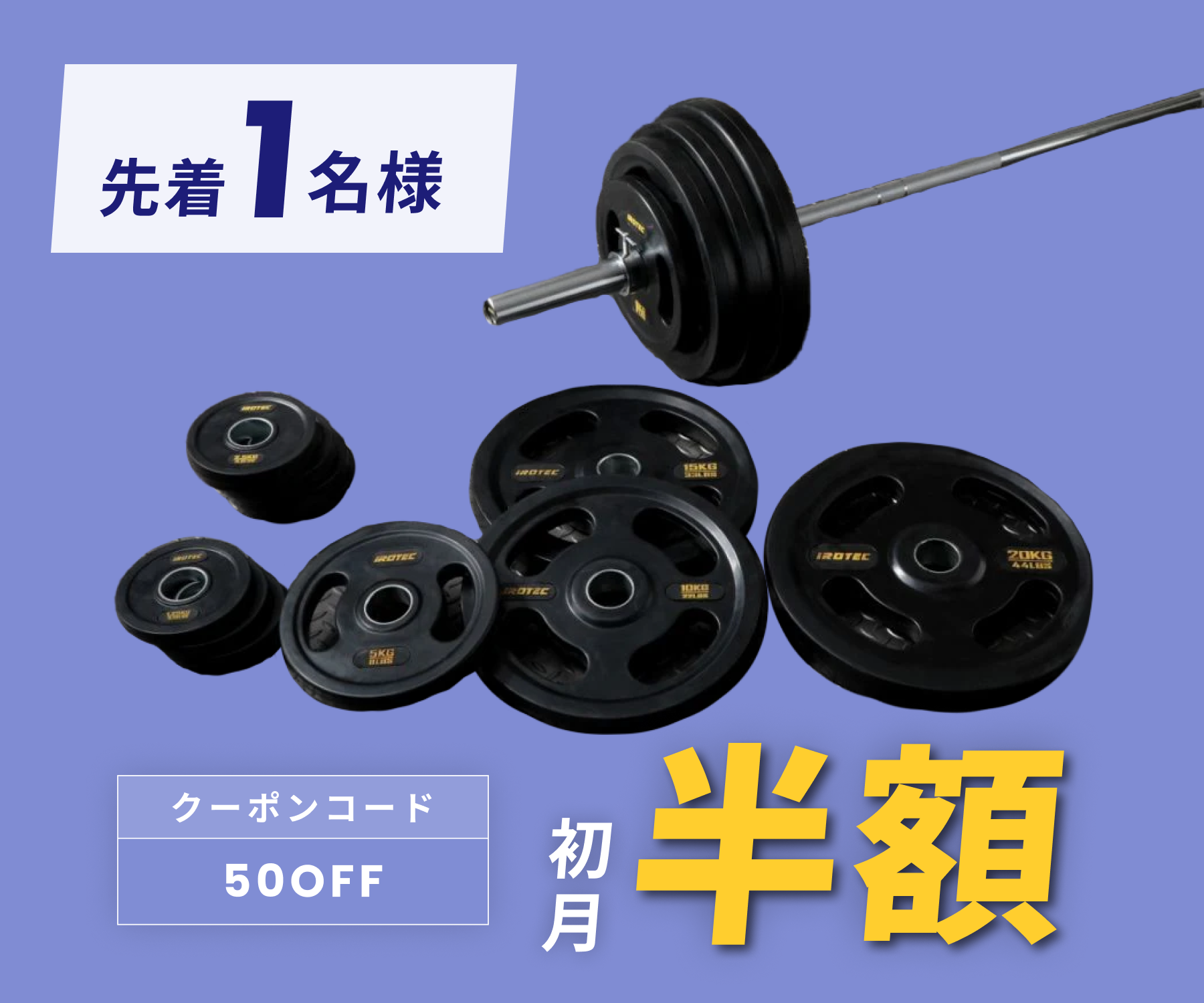 月額16,800円レンタルプラン:アイロテック オリンピック ラバーバーベル 135KGセット 50mm径