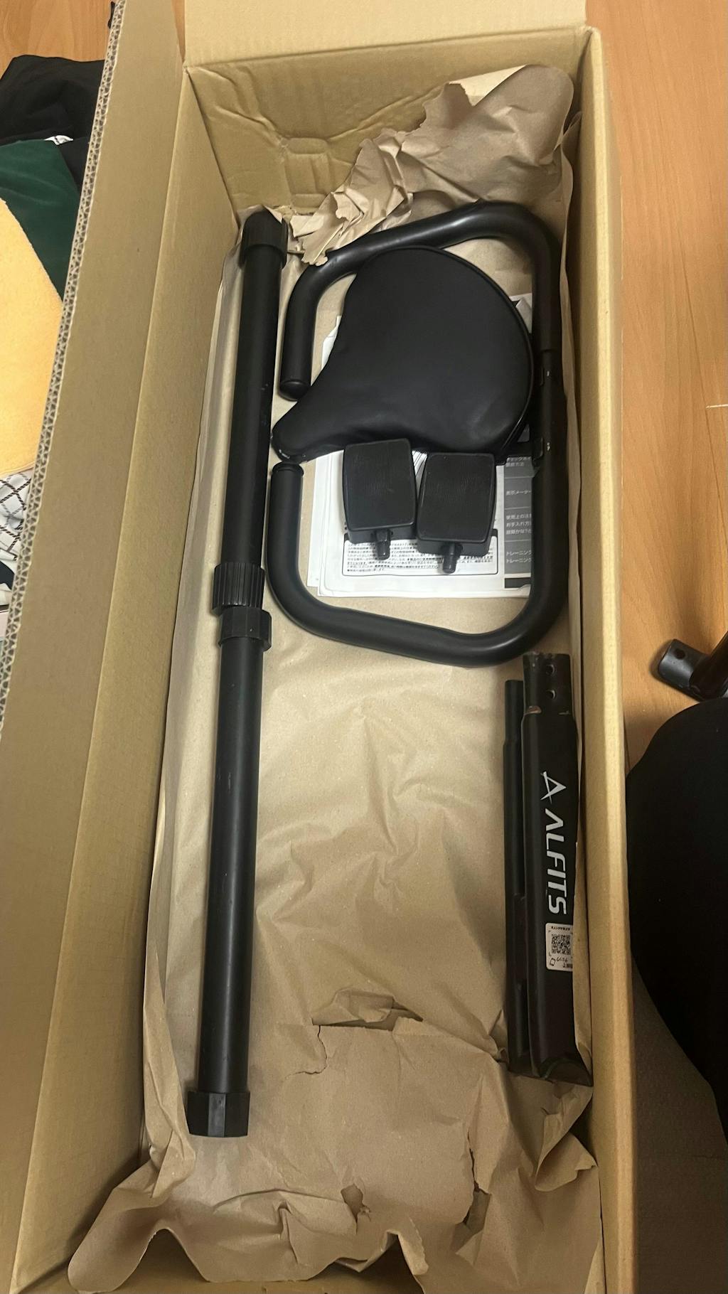ネジがまとめて入っており、どのネジを使って組み立てらばいいか説明書には詳しく書いてなかったので分からなかったですが、機械音痴な私でもなんとなくで組み立てれました!作動時も問題ありませんでした。メーター無しの商品を選びましたが、写真のようにくぼみの部分に簡易的にスマホを置きながら焦げるので(置くだけなので激しく動いたら落ちますが)、メーターの無い安いプランでも全然いいと思います!実際使ってみたらこのぐらいの負荷で20分漕いだらこんなに疲れるのか...など体感を知れたので、買おうか悩んでる方はここでお試しで使ってみるのは全然ありだと思います!
