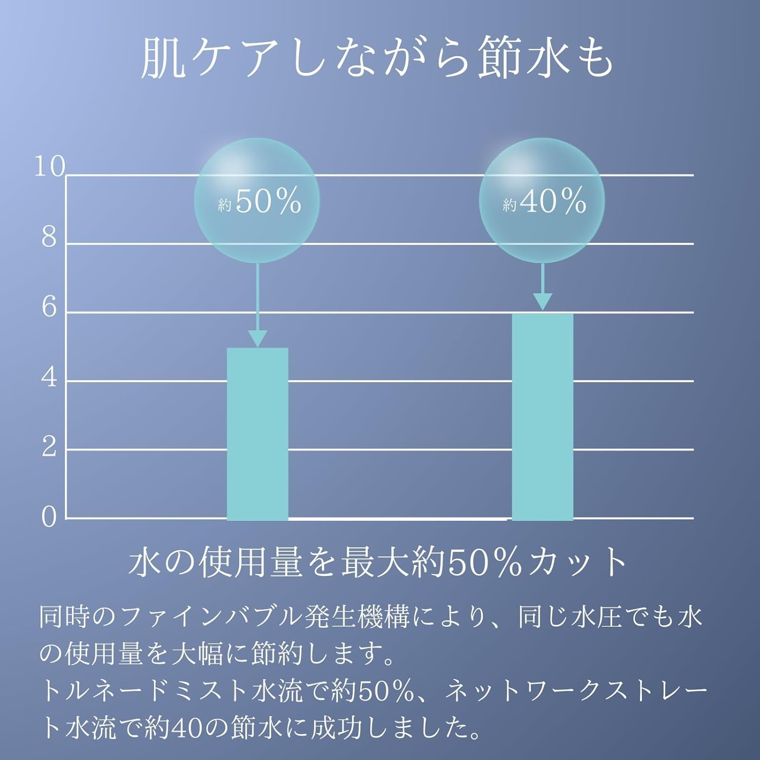 同じ水圧でも水の使用量を大幅に節約できます。