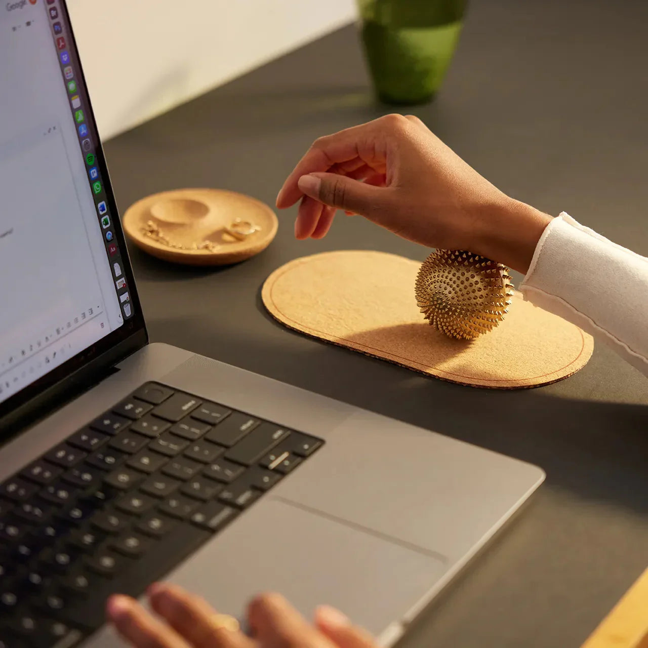 ・コルクマットを使って手首や前腕を転がす