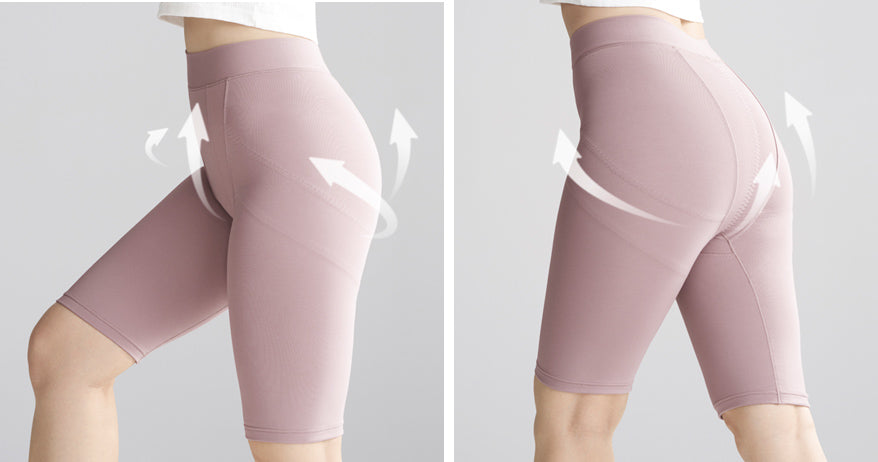 ヒップラインに沿ったサポート生地がお尻を支え、骨盤を立たせた姿勢を保ちやすくします。ゆるんだ骨盤底筋をサポートし、下垂した骨盤内臓器を正常な位置に保持します。