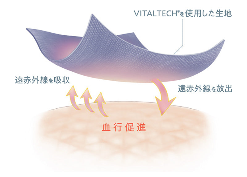 ゆるんだ骨盤底筋をサポートし、特殊繊維VITALTECHの遠赤外線効果で血行促進効果をもたらします。